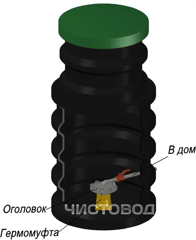 Кессон «Чистовод-950» применяют для обустройства скважины и подключения её к дому. Габаритные размеры кессона позволяют установить внутри:оголовок скважины и трубопроводную обвязку, при этом скважинное оборудование (гидробак, автоматика) размещают в доме.